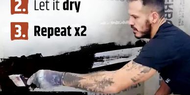 Materials: Polyurethane waterproofing membrane. Brush, roller, or sprayer.